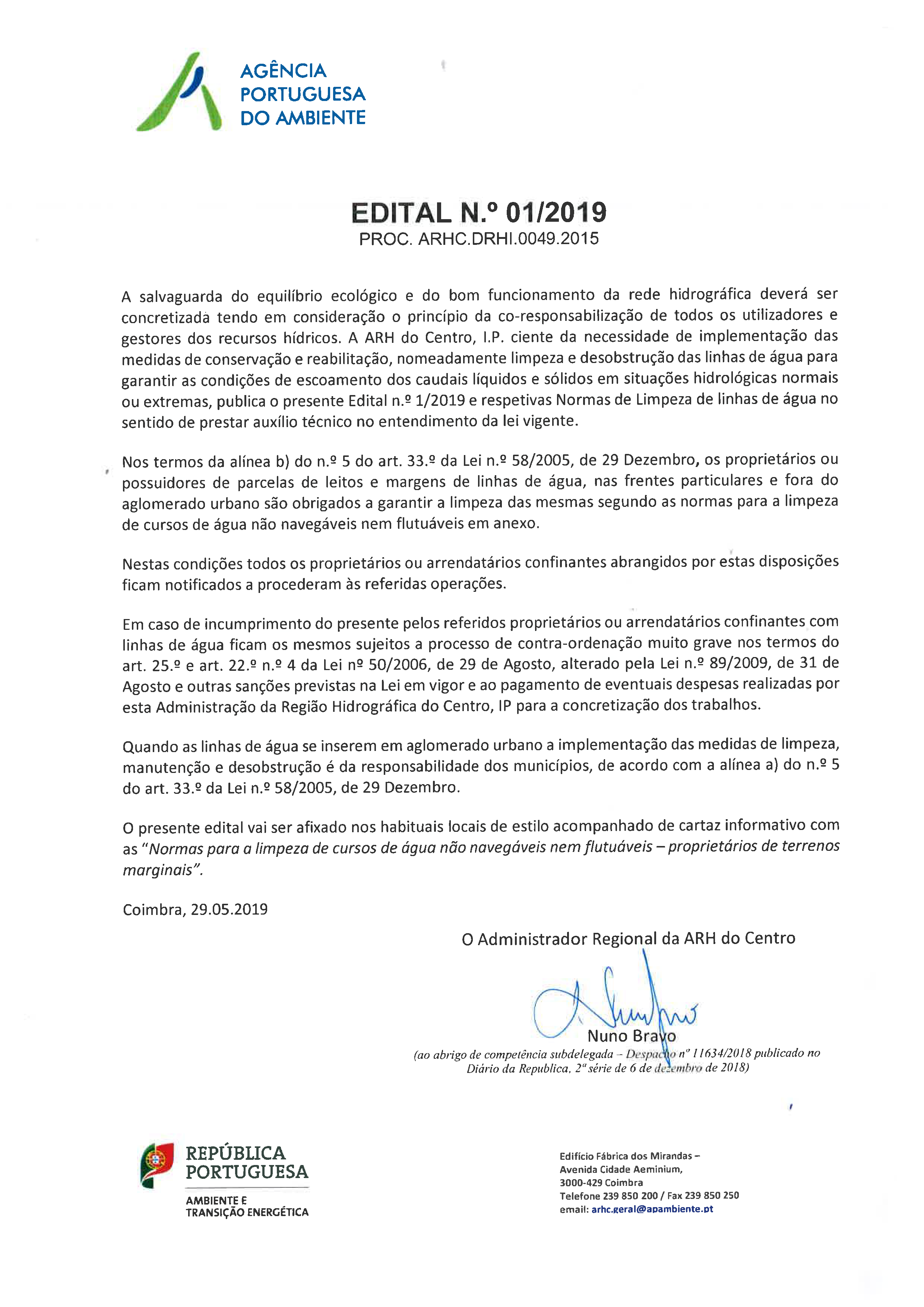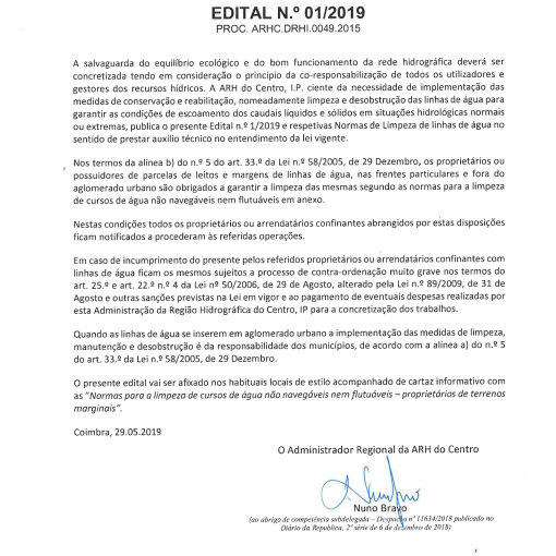 Published 3 Julho, 2020 Informação – Limpeza de Linhas de Água ARH Centro e Normas de Limpeza VER CARTAZ EM PDF VER EDITAL EM PDF